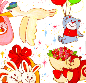 お店のポストカードのイラストと、出産祝いのジュースのラベルのイラストを描きました。